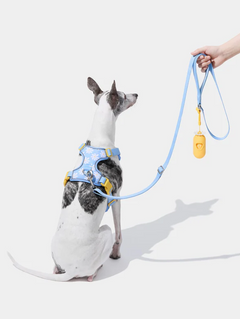Een lichtgewicht harnas en bijpassende riem met een vrolijke madeliefjesprint, ontworpen voor dagelijks comfort en controle. Het H-vormige harnas verdeelt de druk, terwijl ademend mesh het harnas luchtig houdt tijdens warme wandelingen. Reflecterende randen zorgen voor zichtbaarheid bij weinig licht en de riem heeft een zachte neopreen handgreep met verstelbare lengte voor comfortabel gebruik.