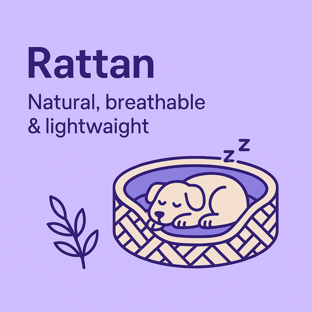 Rattan is a natural and breathable material, making it lightweight and ideal for pet beds and toys while adding a simple, timeless look.