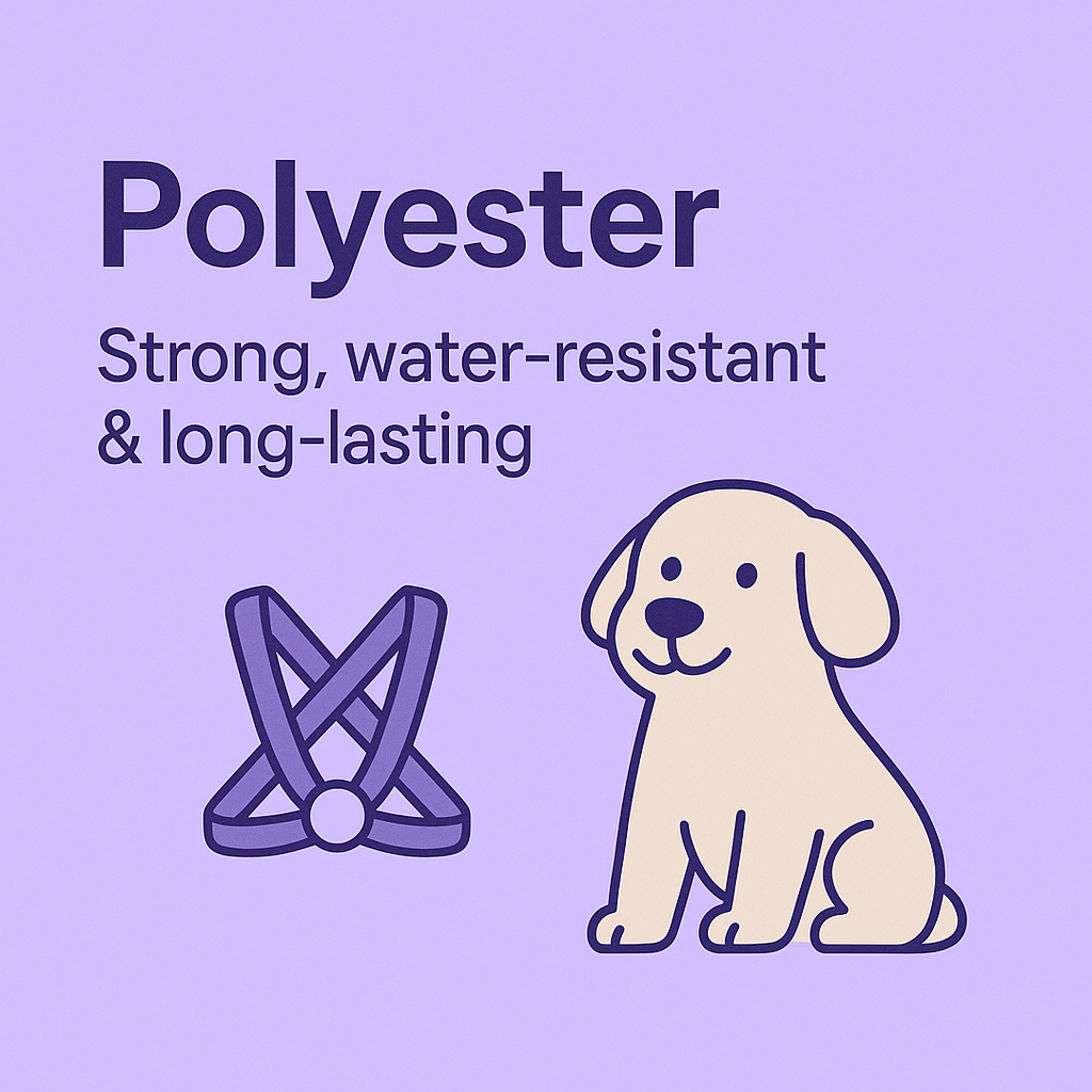 Polyester is strong and water-resistant, helping collars, harnesses, and pet gear stay reliable and long-lasting.