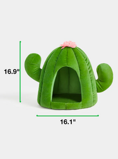 A cozy, cactus-inspired cave bed for cats and small dogs. The semi-enclosed shape helps pets feel secure, while plush polyester fabric and soft padding create a comfortable spot for daily naps. Lightweight and easy to move between rooms.
