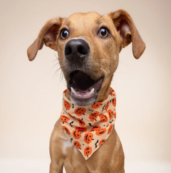A festive tie-on bandana with pumpkins and bats for spooky-season walks and photos. Tailor-cut in a triangle shape (no folding needed), it’s double-sided 100% cotton with finished edges for comfort and durability. Machine-washable for easy cleanup.